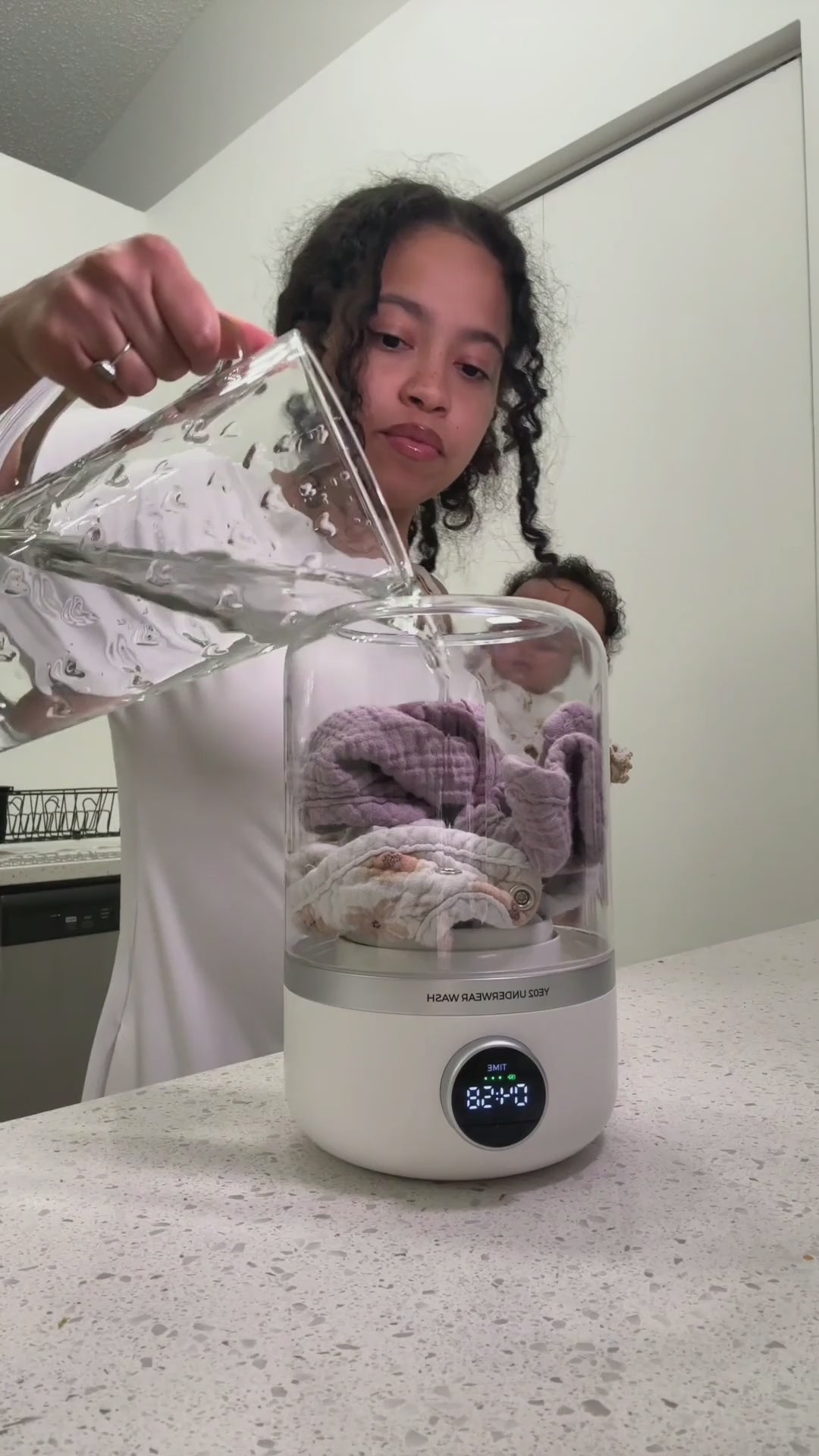 Wir haben täglich ein paar Spuck- und Mulltücher. Dafür jedes Mal die große Maschine laufen zu lassen, hat sich nie richtig angefühlt. Diese kleine Waschmaschine schließt genau diese Lücke.